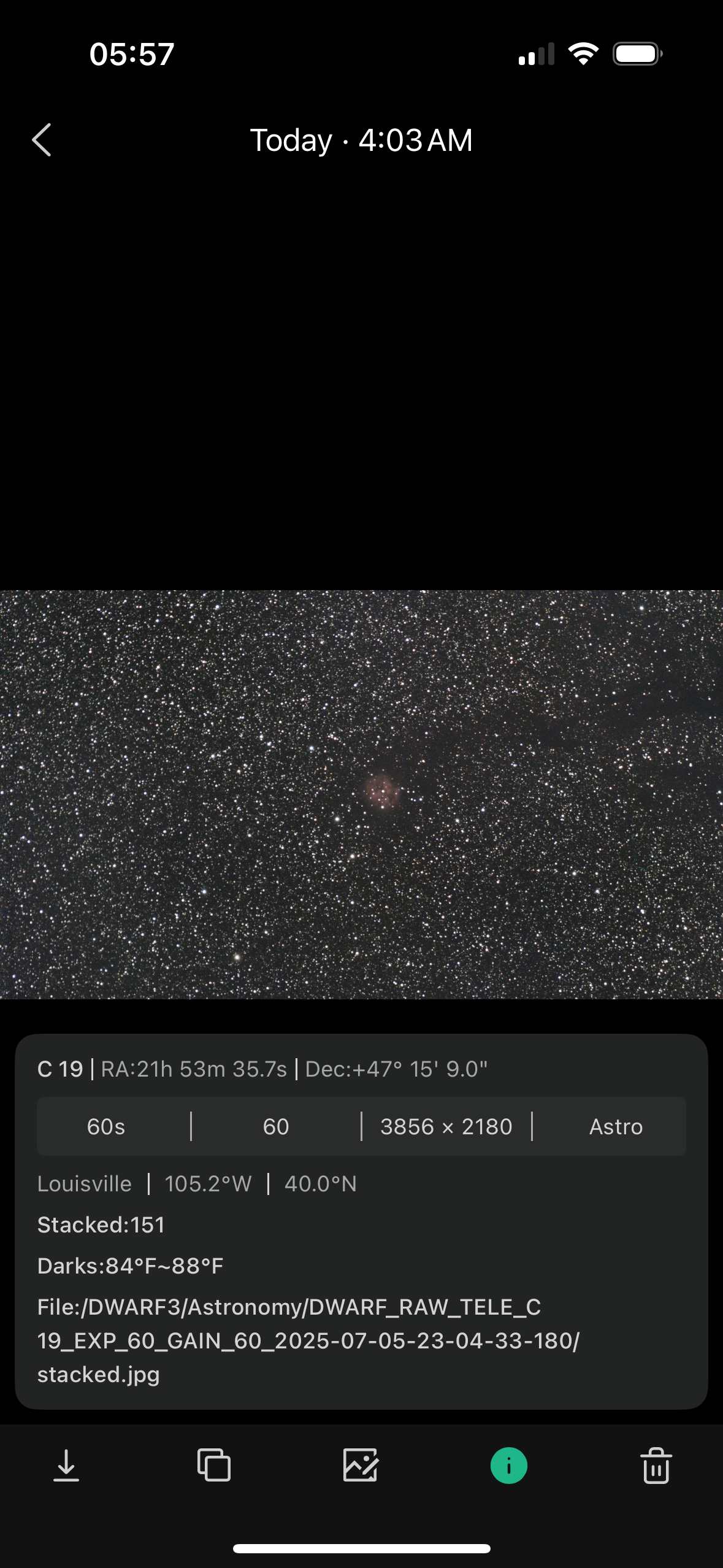The Cocoon Nebula worked some of the time, but it must have been behind the neighbors’ house, or maybe a tree, for a significant chunk of the night.