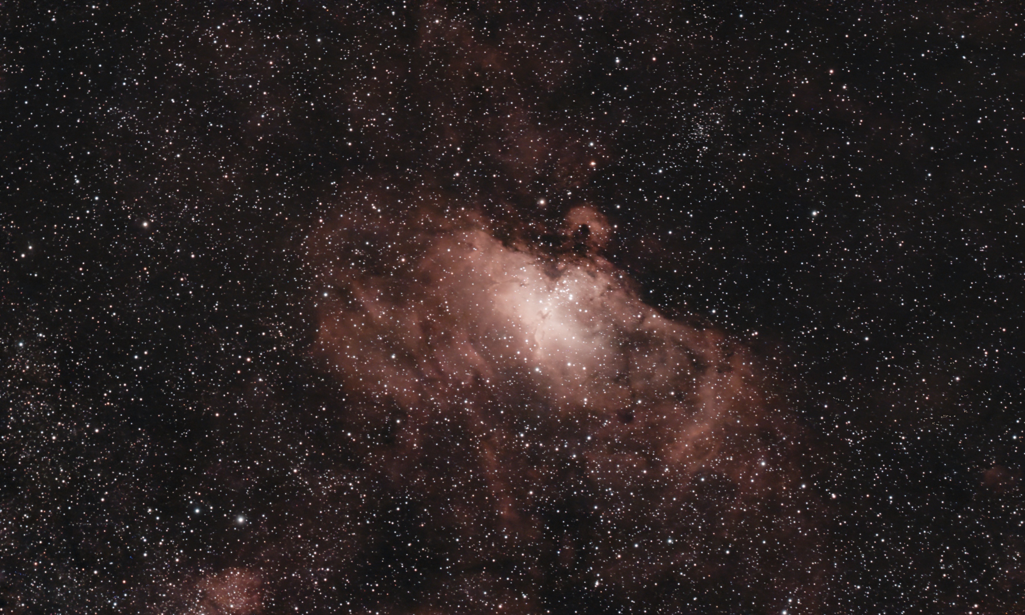 M 16, The Eagle Nebula, from a stack of 90 60-second exposures, 60 gain, Duo filter.