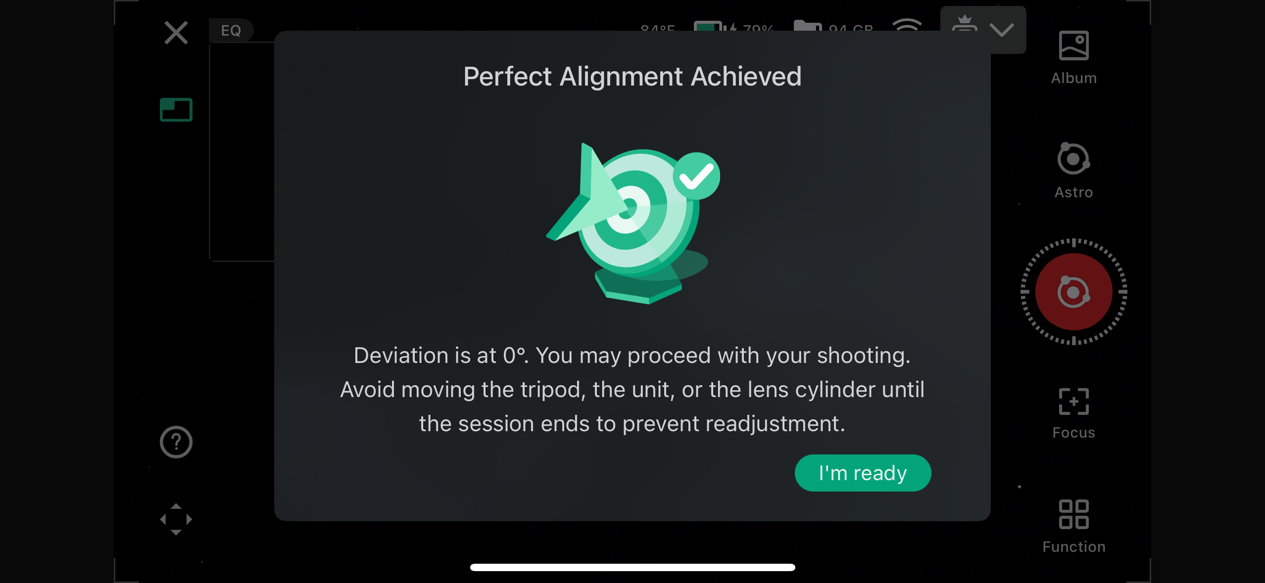 The first night I captured M 8, M 16, and M 57. On the first night, I got my first ever 0 degrees deviation when polar aligning!