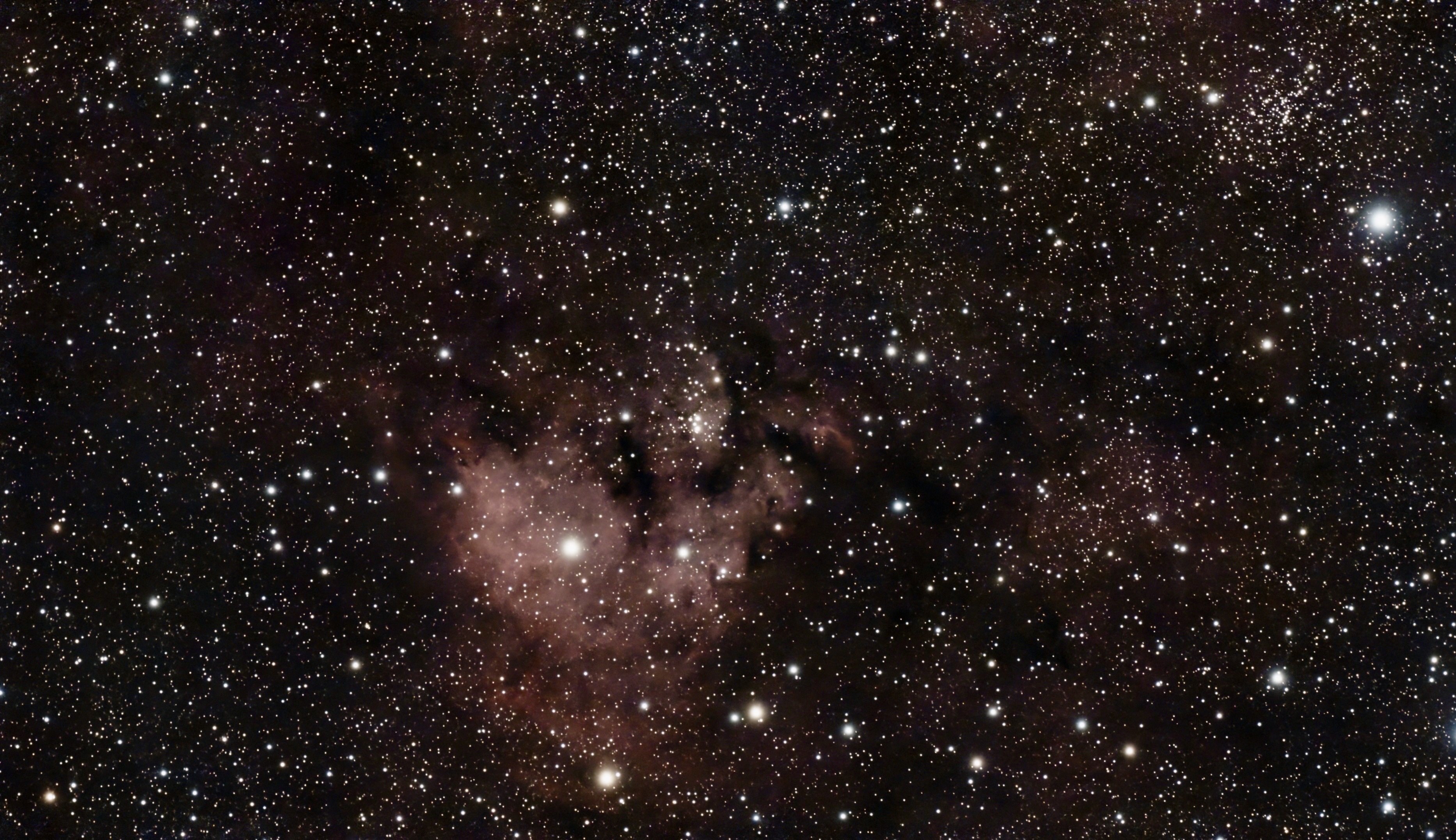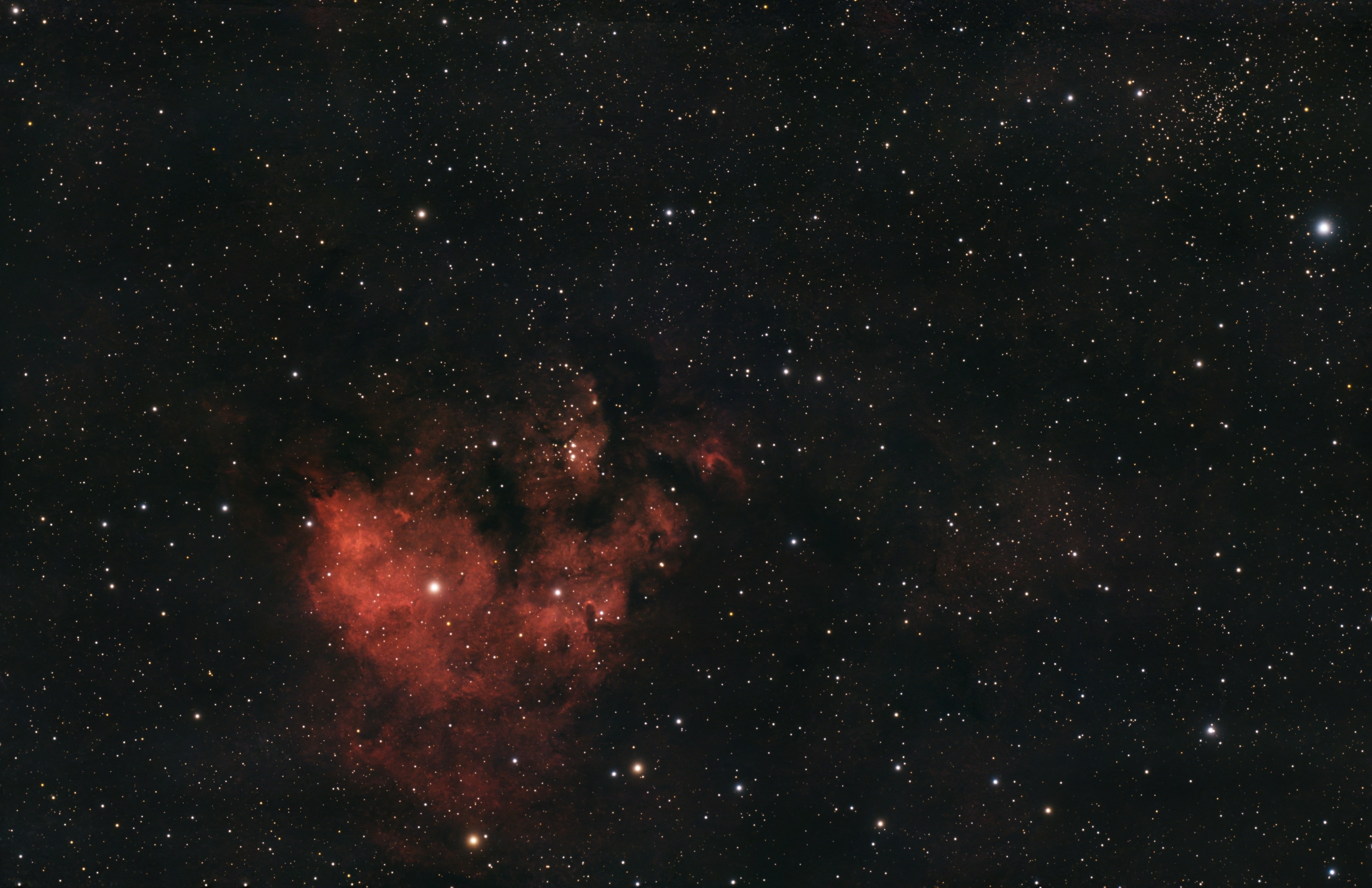 The Wizard Nebula, NGC 7380; 806 subs, 45 secs, 60 gain, duo filter; taken October 28/29, 30/31, and November 1, from Monsters’ Clubhouse